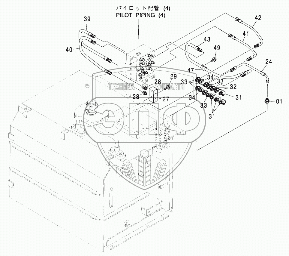 Каталог запасных частей к технике: Hitachi ZX-600. PILOT PIPING (3-1)