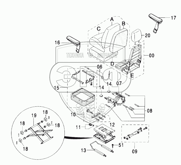 Каталог запасных частей к технике: Hitachi ZX-600. SEAT