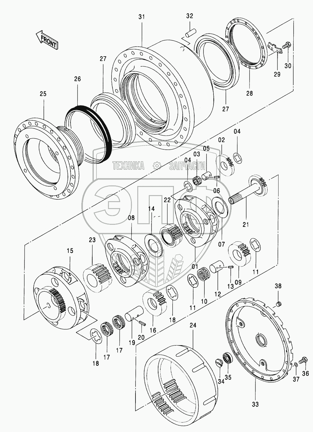 Каталог запасных частей к технике: Hitachi ZX-600. TRANSMISSION (TRAVEL)