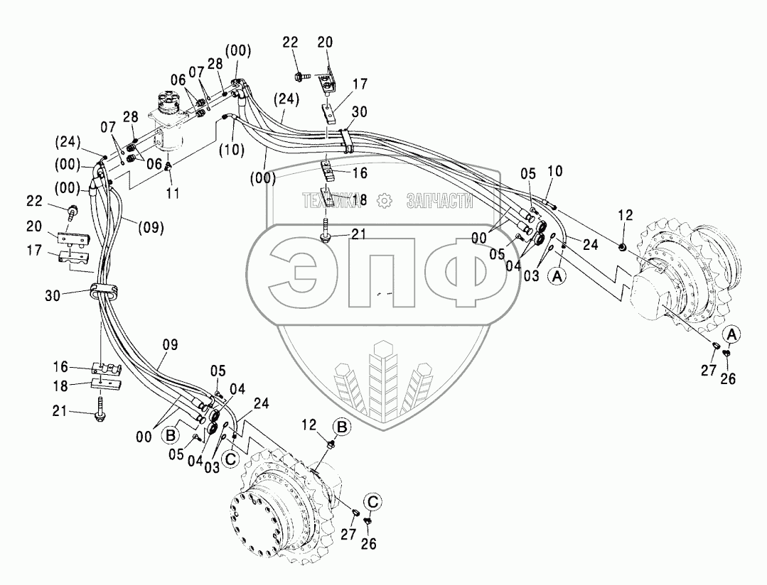 Каталог запасных частей к технике: Hitachi ZX-600. TRAVEL PIPING (LC TRACK)
