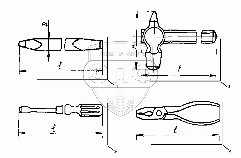 Каталог запасных частей к технике: ХТЗ МТ-ЛБ. Лом, молоток, отвертка, пассатижи