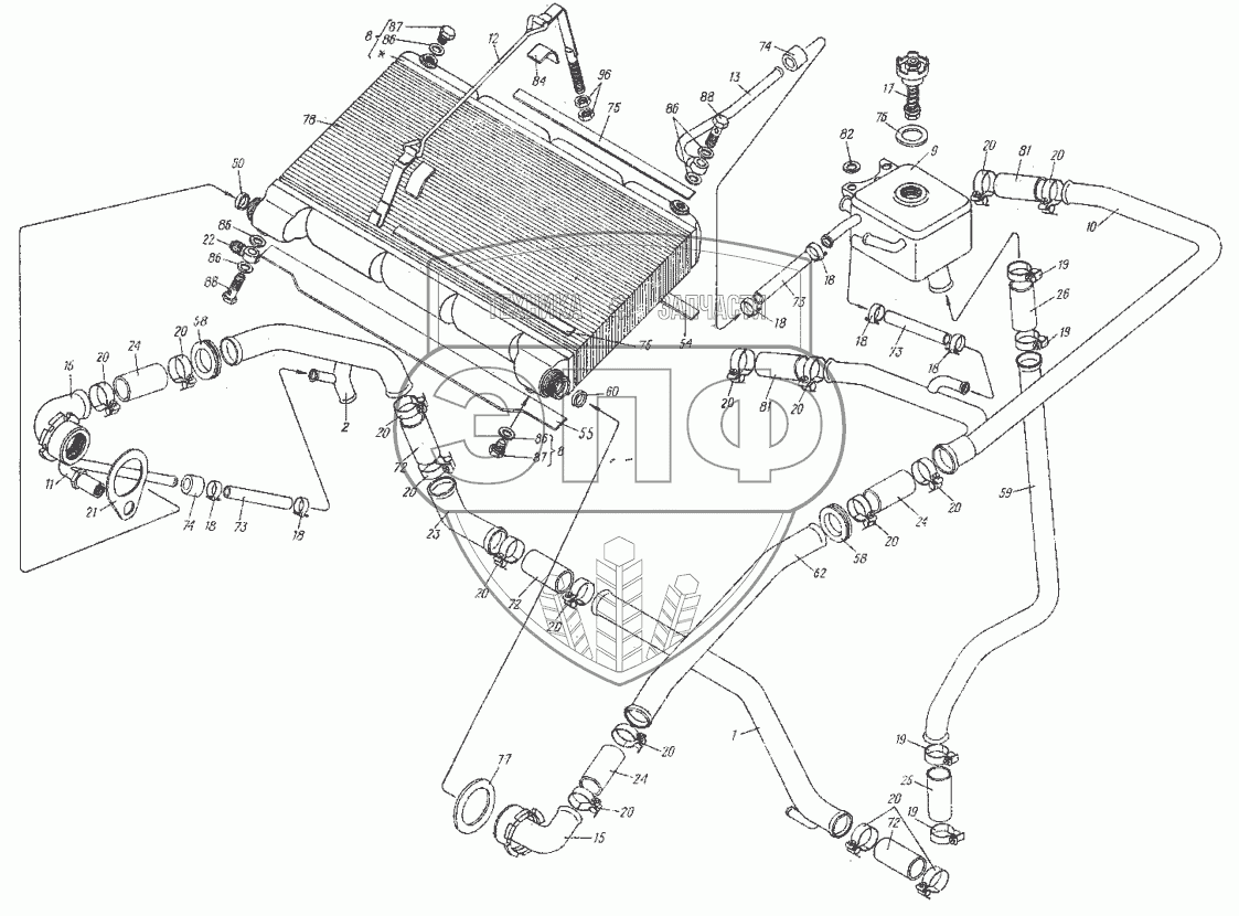 Каталог запасных частей к технике: ХТЗ МТ-ЛБ. Система охлаждения 8.02.001