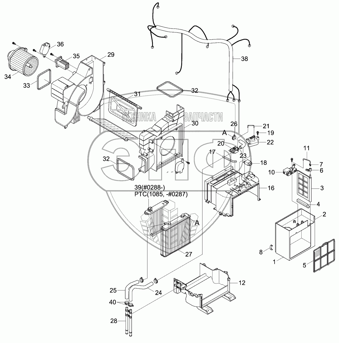 Каталог запасных частей к технике: Hyundai R140W-9. HEATER UNIT (SEMI AUTO)