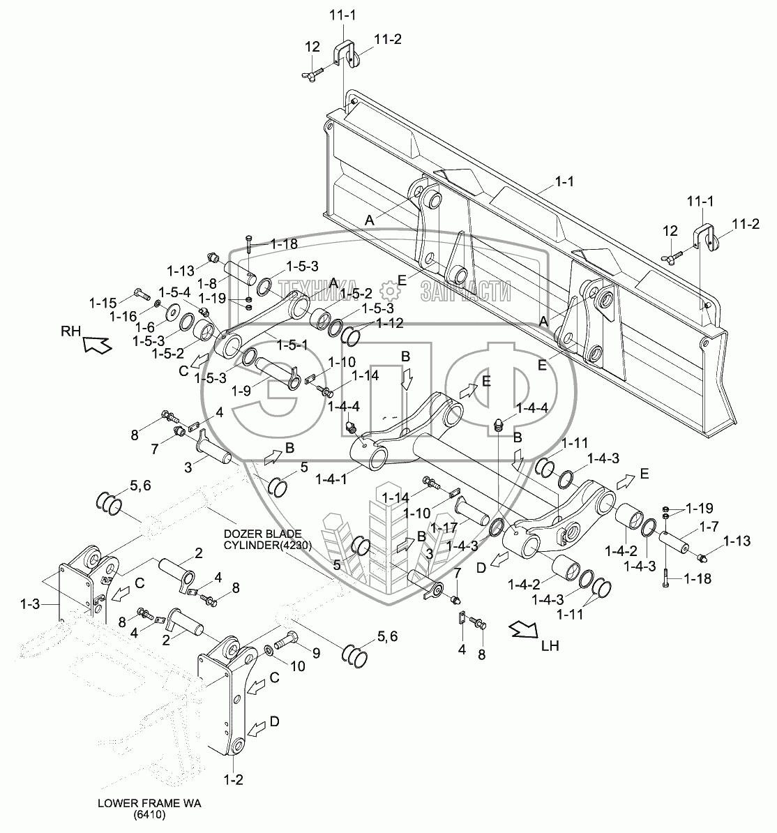 Каталог запасных частей к технике: Hyundai R140W-9S. DOZER BLADE-REAR