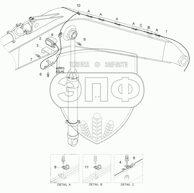 Каталог запасных частей к технике: Hyundai R170W-7. BOOM ELECTRIC (STD)