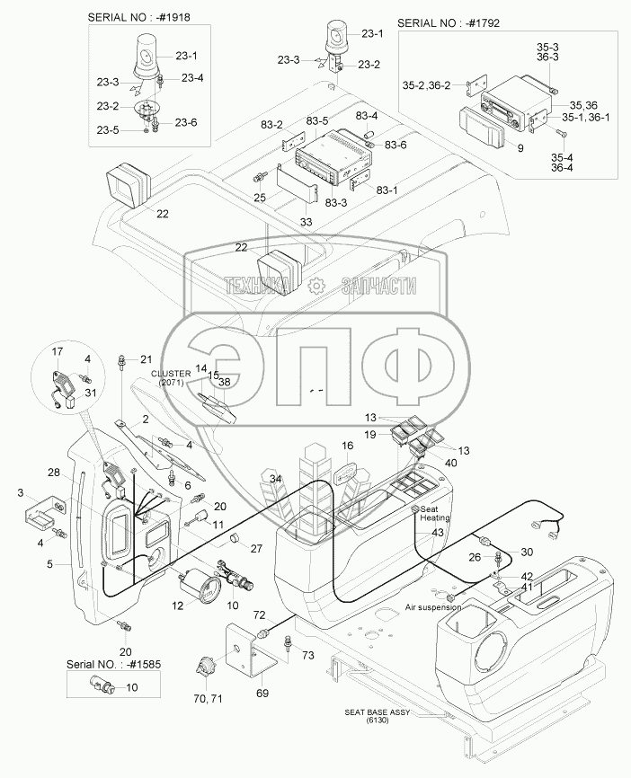 Каталог запасных частей к технике: Hyundai R170W-7. CAB ELECTRIC 2 (OPT, #1230-)