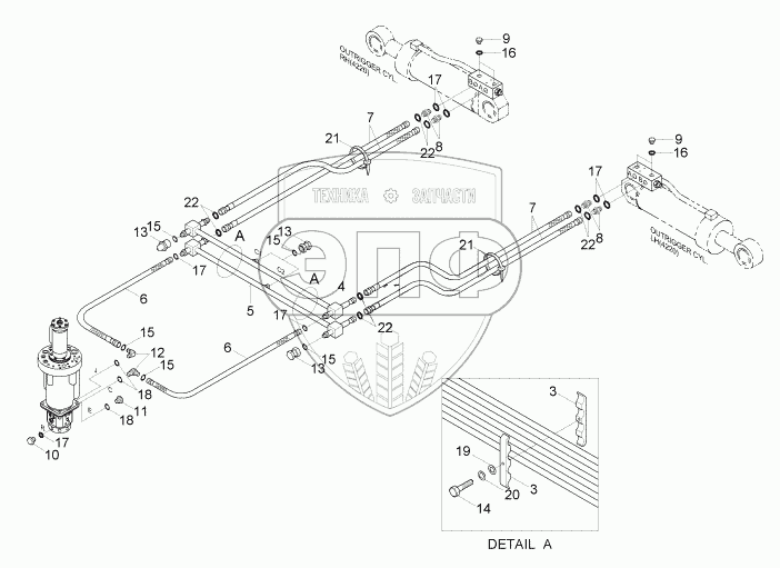 Каталог запасных частей к технике: Hyundai R170W-7. LOWER HYD PIPING (REAR OUTRIGGER)