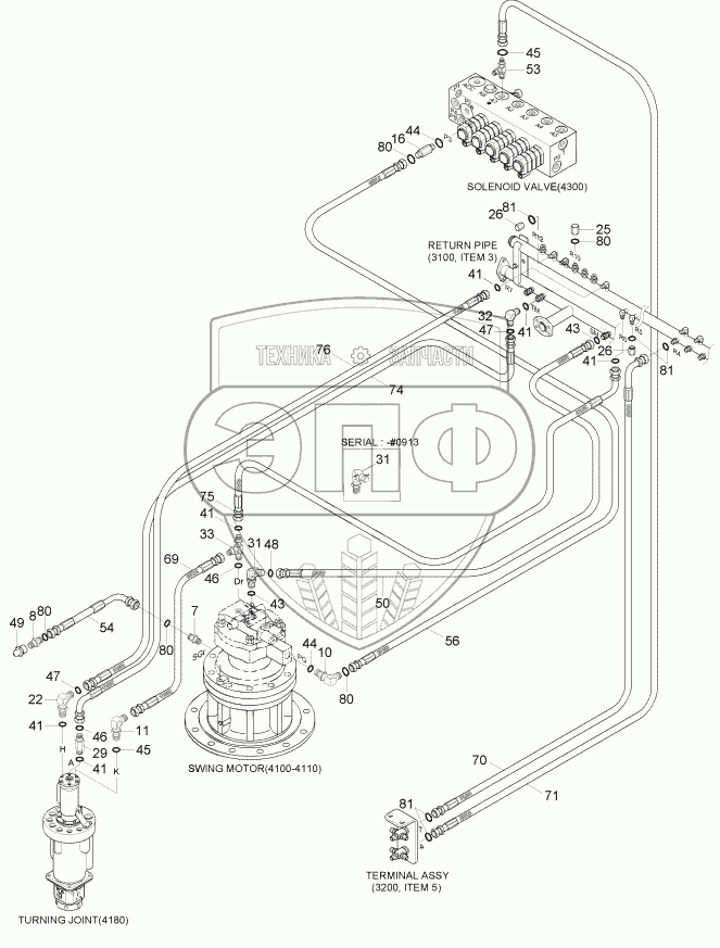 Каталог запасных частей к технике: Hyundai R170W-7. PILOT HYD PIPING (BASE 3)
