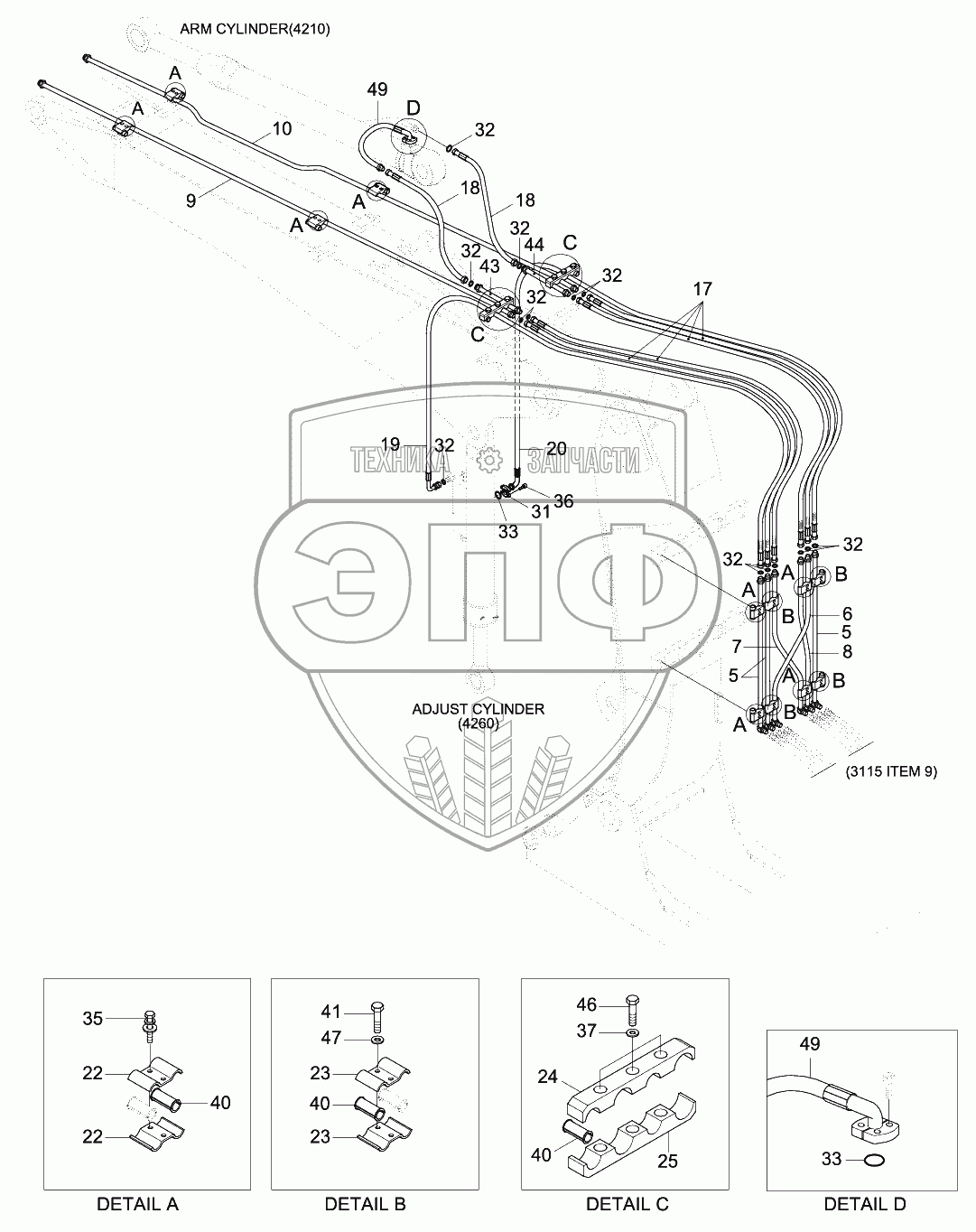 Каталог запасных частей к технике: Hyundai R170W-9. BOOM HYD PIPING (ADJUST BOOM)