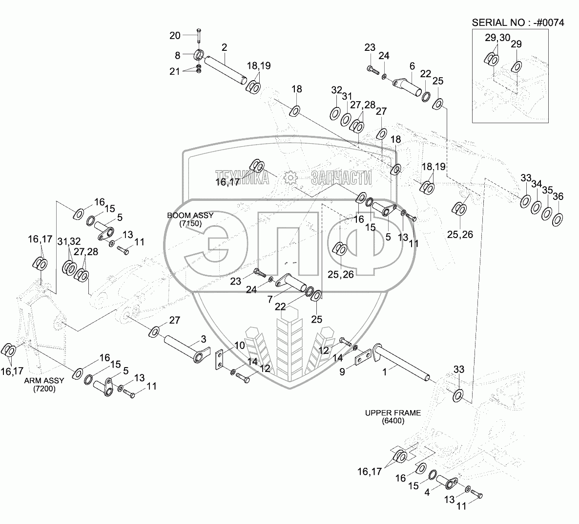 Каталог запасных частей к технике: Hyundai R170W-9. BOOM MOUNTING (ADJUST BOOM)