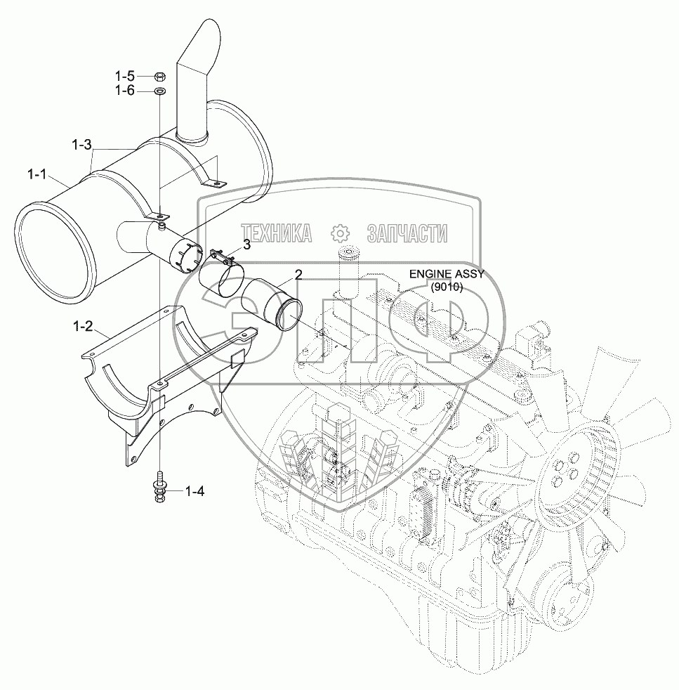 Каталог запасных частей к технике: Hyundai R170W-9. EXHAUST SYSTEM