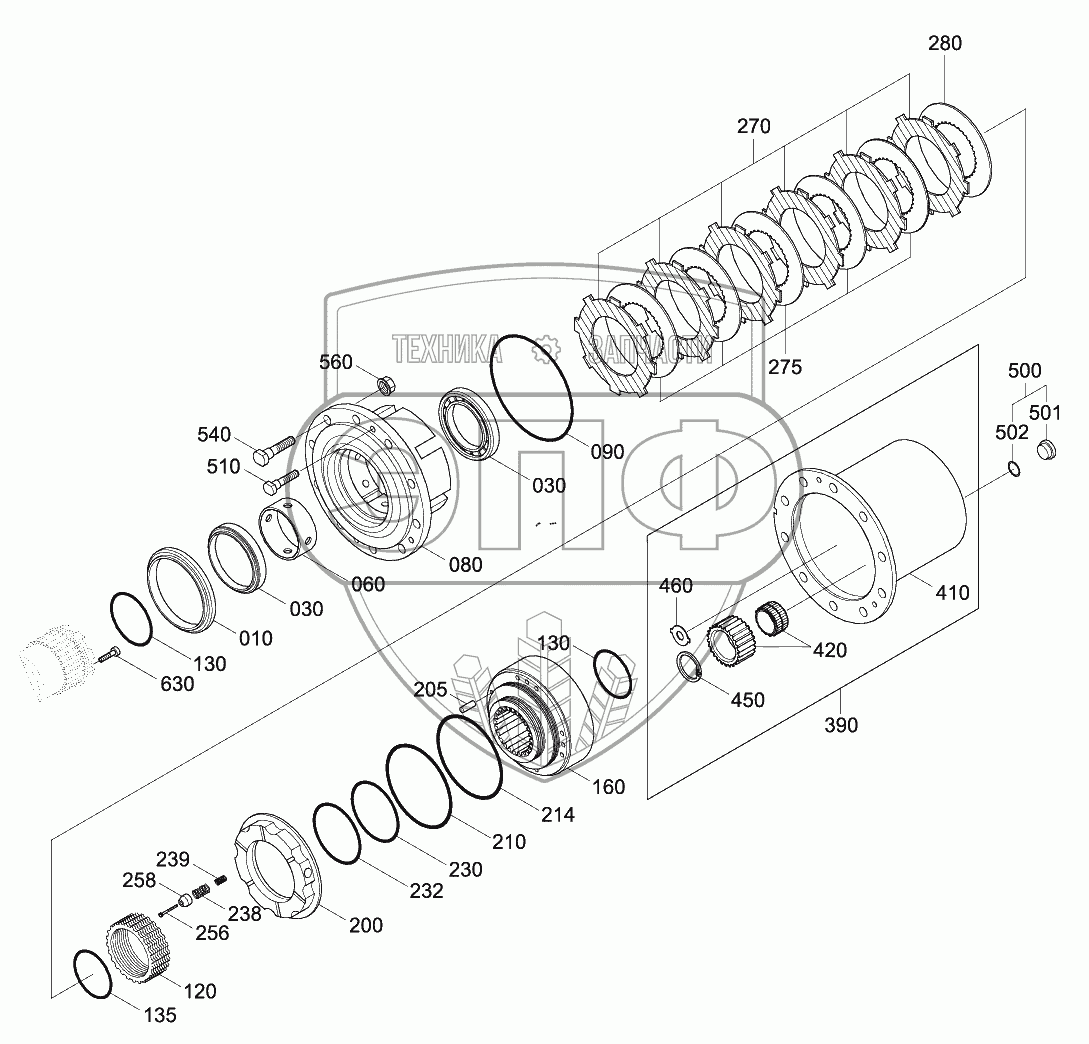 Каталог запасных частей к технике: Hyundai R170W-9. FRONT AXLE OUTPUT GROUP (#0193-)