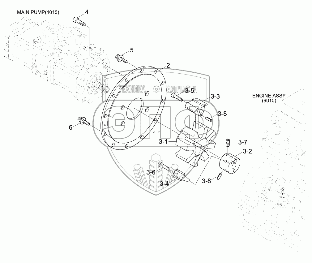 Каталог запасных частей к технике: Hyundai R170W-9. PUMP MOUNTING