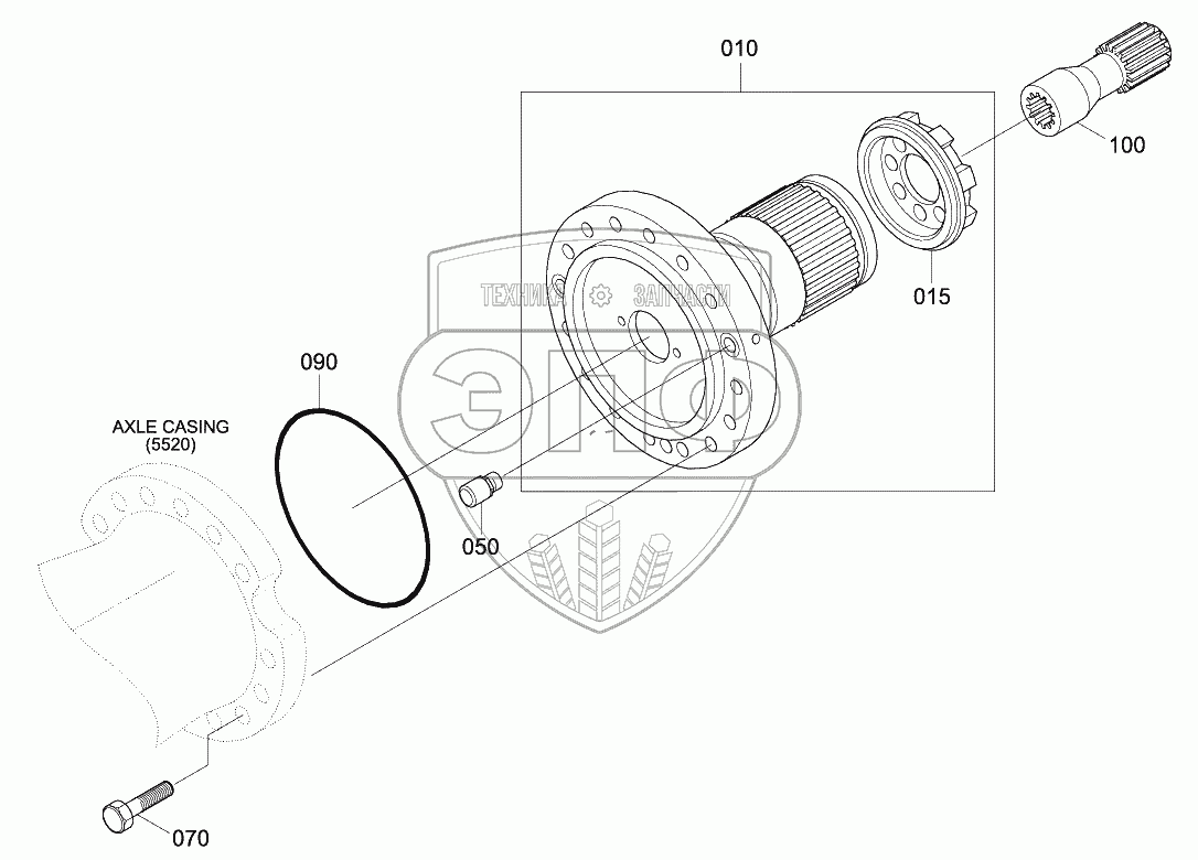 Каталог запасных частей к технике: Hyundai R170W-9. REAR AXLE HUB CARRIER (#0193-)