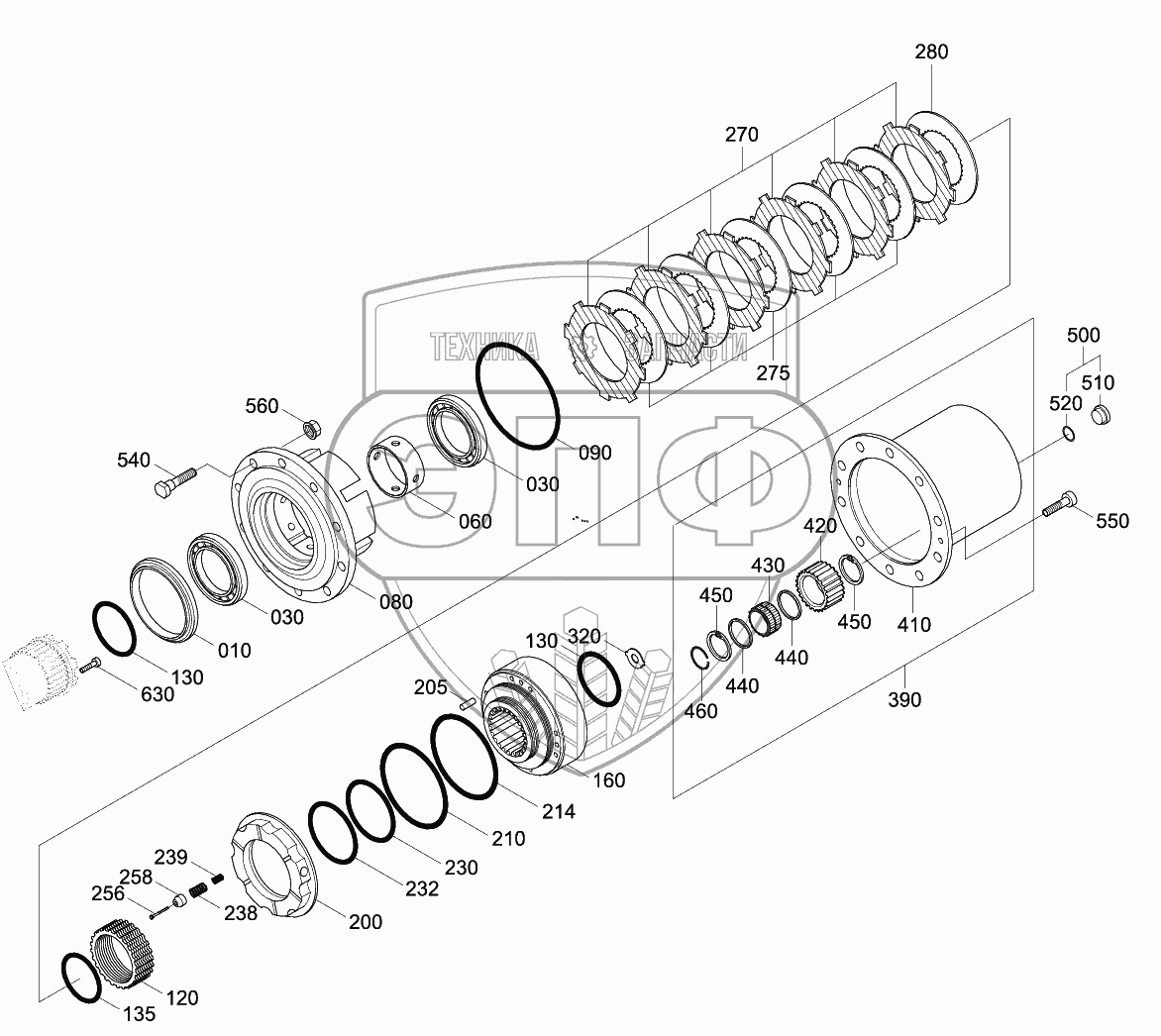 Каталог запасных частей к технике: Hyundai R170W-9S. FRONT AXLE OUTPUT GROUP (-#0425)