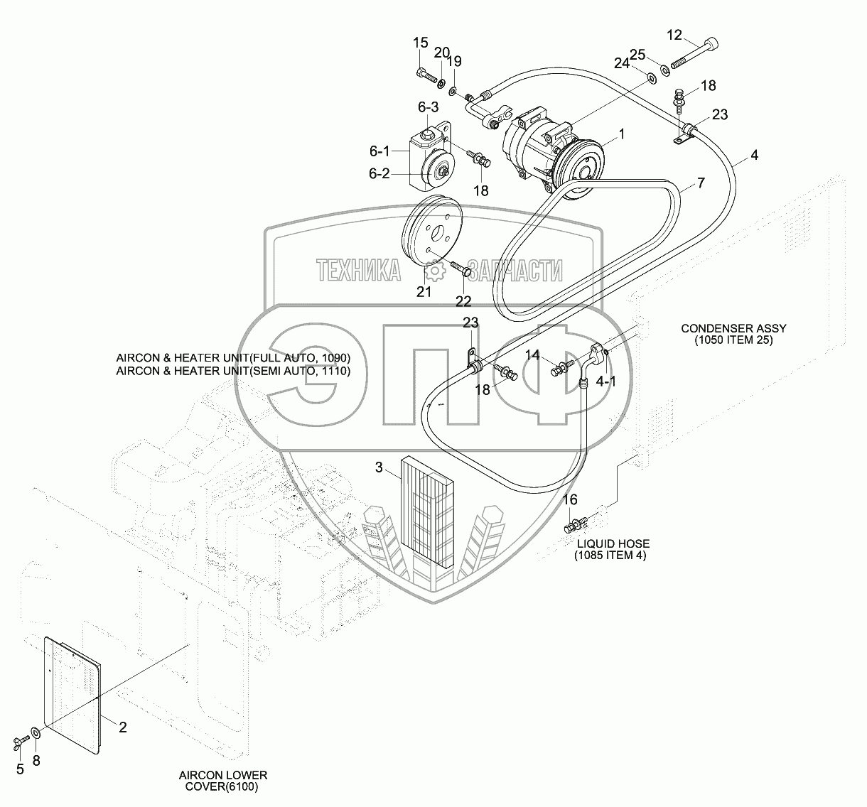 Каталог запасных частей к технике: Hyundai R180LC-9. AIR CONDITIONER MOUNTING