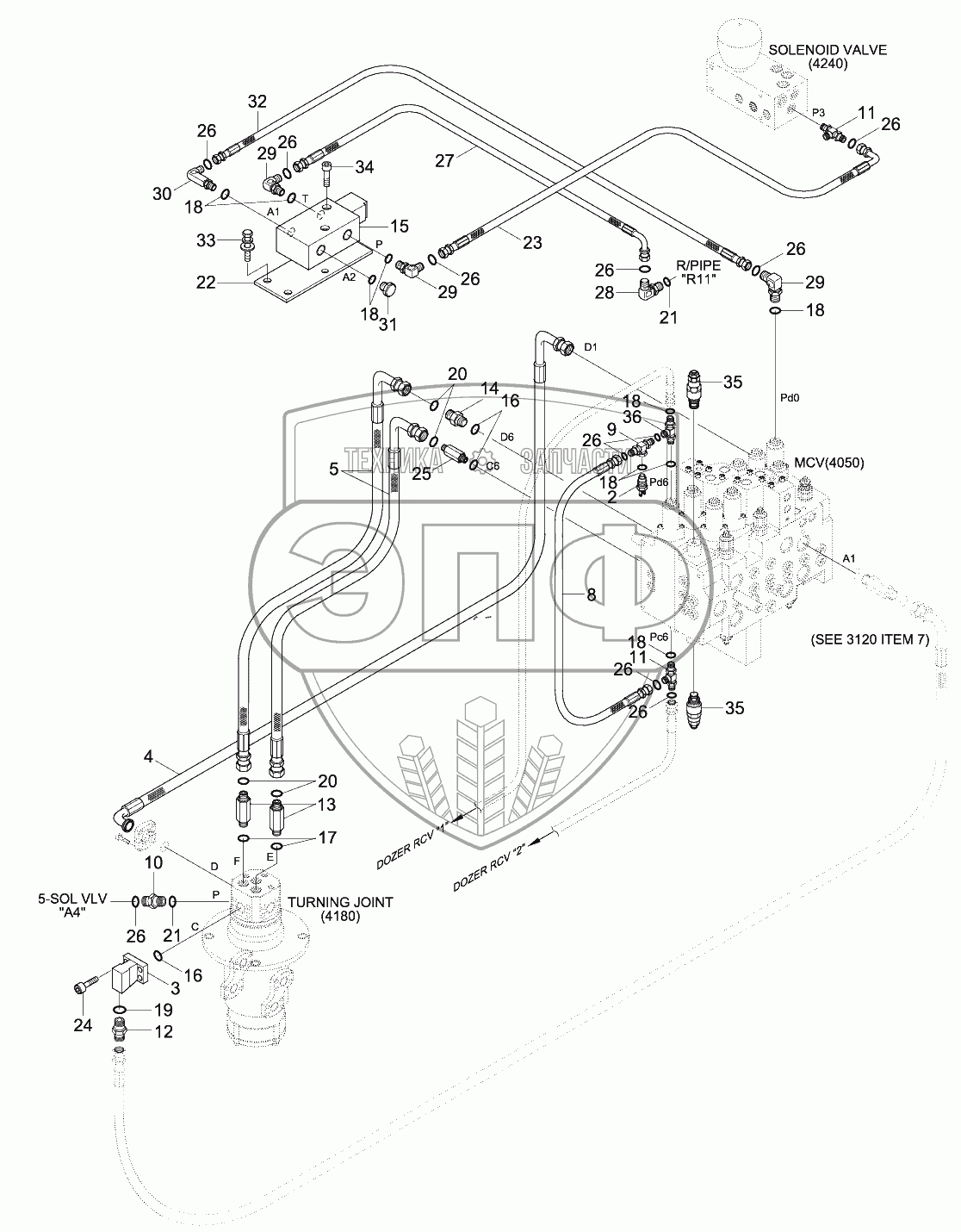 Каталог запасных частей к технике: Hyundai R180LC-9. UPPER HYD PIPING (R180LCD-9)