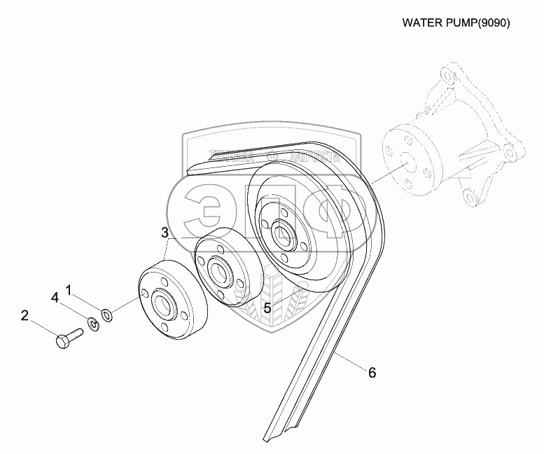 Каталог запасных частей к технике: Hyundai R180LC-9. WATER PUMP PULLEY & V-VELT