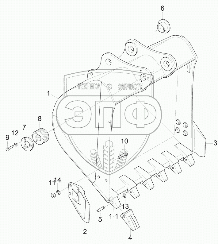 Каталог запасных частей к технике: Hyundai R180LC-9S. BUCKET (6 TEETH)
