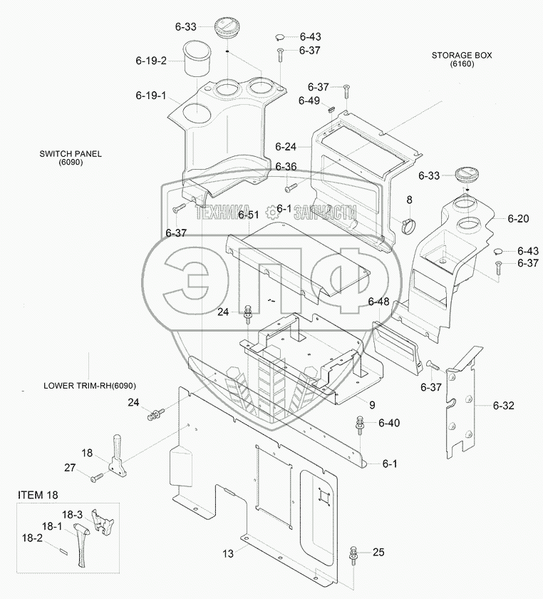 Каталог запасных частей к технике: Hyundai R180LC-9S. CAB INTERIOR 3
