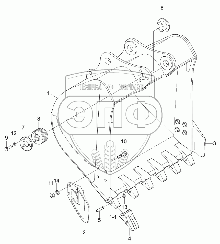 Каталог запасных частей к технике: Hyundai R180W-9S. BUCKET (6 TEETH)