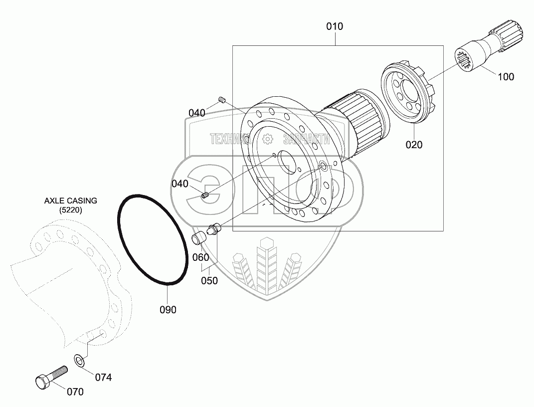 Каталог запасных частей к технике: Hyundai R180W-9S. REAR AXLE HUB CARRIER (-#0425)