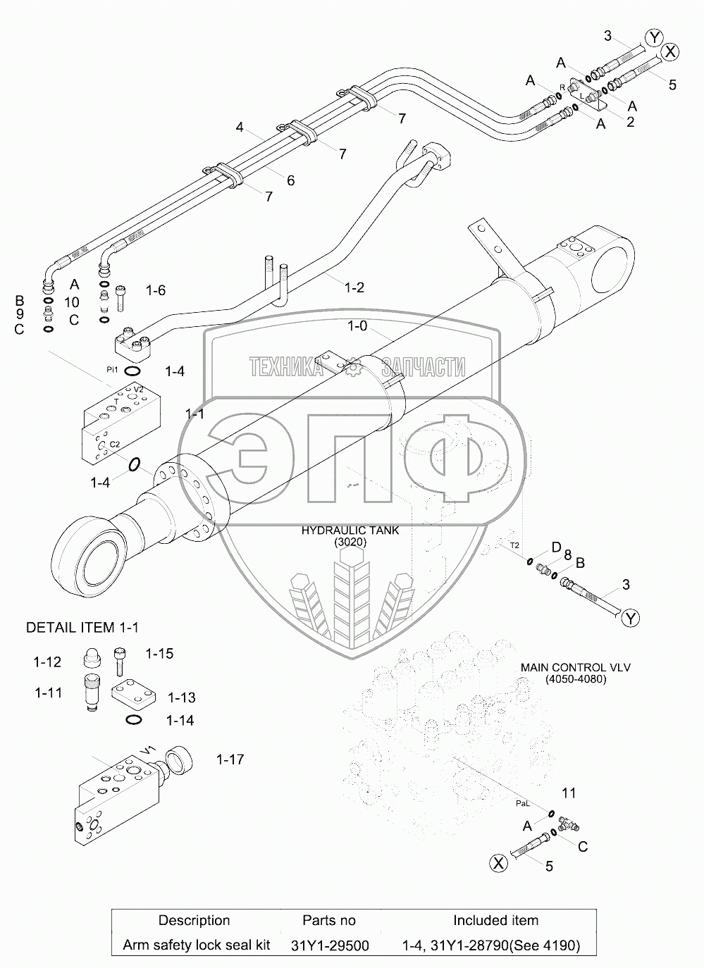 Каталог запасных частей к технике: Hyundai R210LC-9. ARM SAFETY LOCK SYSTEM
