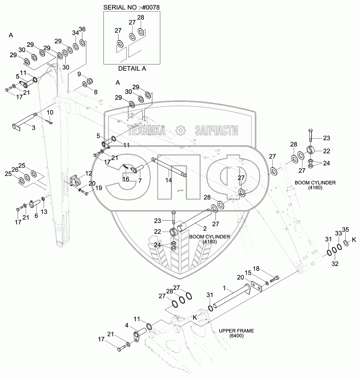 Каталог запасных частей к технике: Hyundai R210LC-9. BOOM MOUNTING (LONG REACH, #0008-)