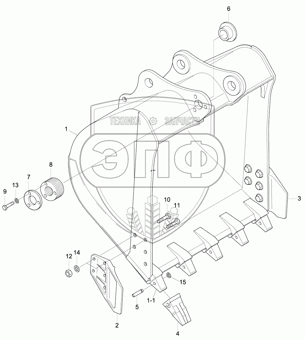 Каталог запасных частей к технике: Hyundai R210LC-9. BUCKET (0.87M3 SAE HEAPED)