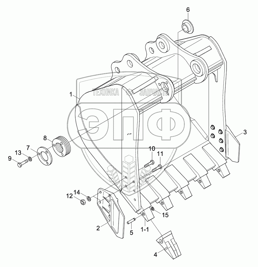 Каталог запасных частей к технике: Hyundai R210LC-9. BUCKET (5 TEETH)