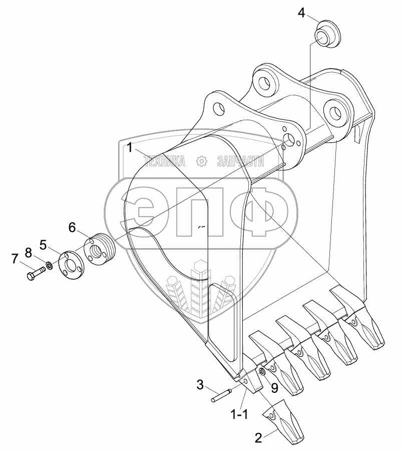 Каталог запасных частей к технике: Hyundai R210LC-9. BUCKET (5 TEETH, HEAVY DUTY)