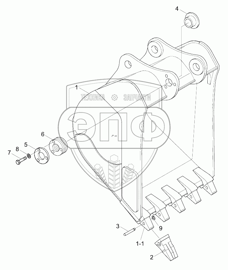 Каталог запасных частей к технике: Hyundai R210NLC-9. BUCKET (5 TEETH, HEAVY DUTY)