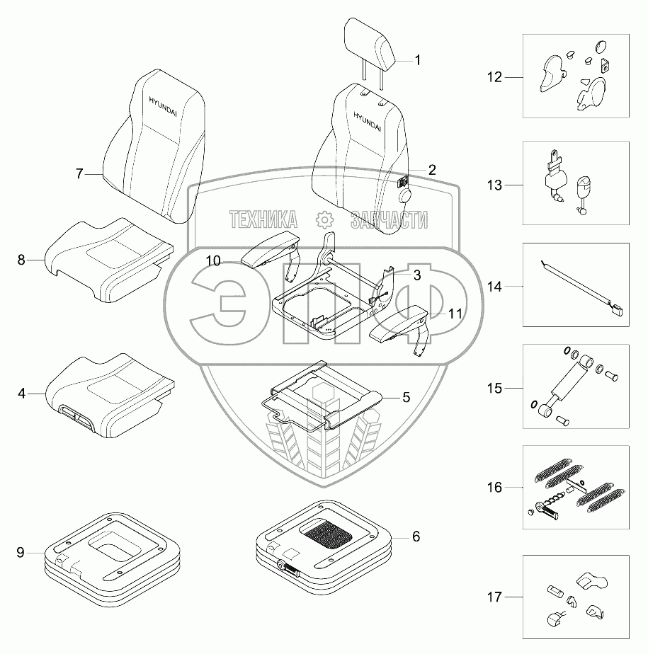 Каталог запасных частей к технике: Hyundai R210NLC-9. SEAT (SUSPENSION, HEATED, STD)