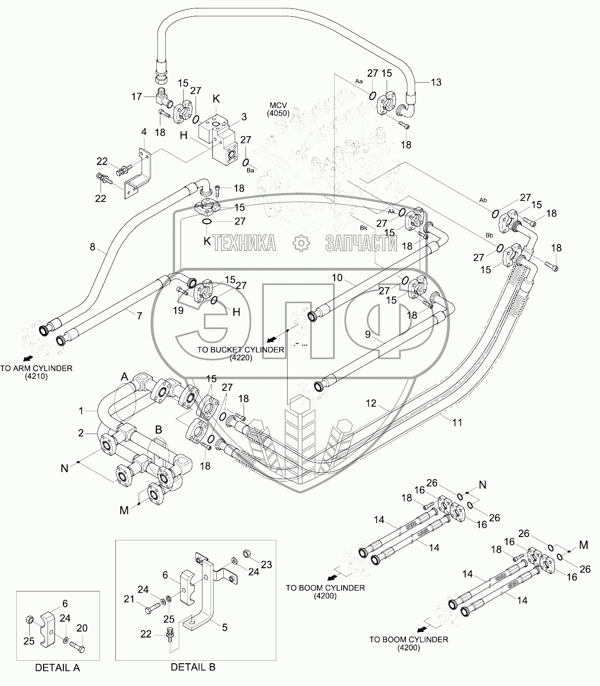 Каталог запасных частей к технике: Hyundai R210NLC-9. UPPER HYD PIPING (ATTACH)
