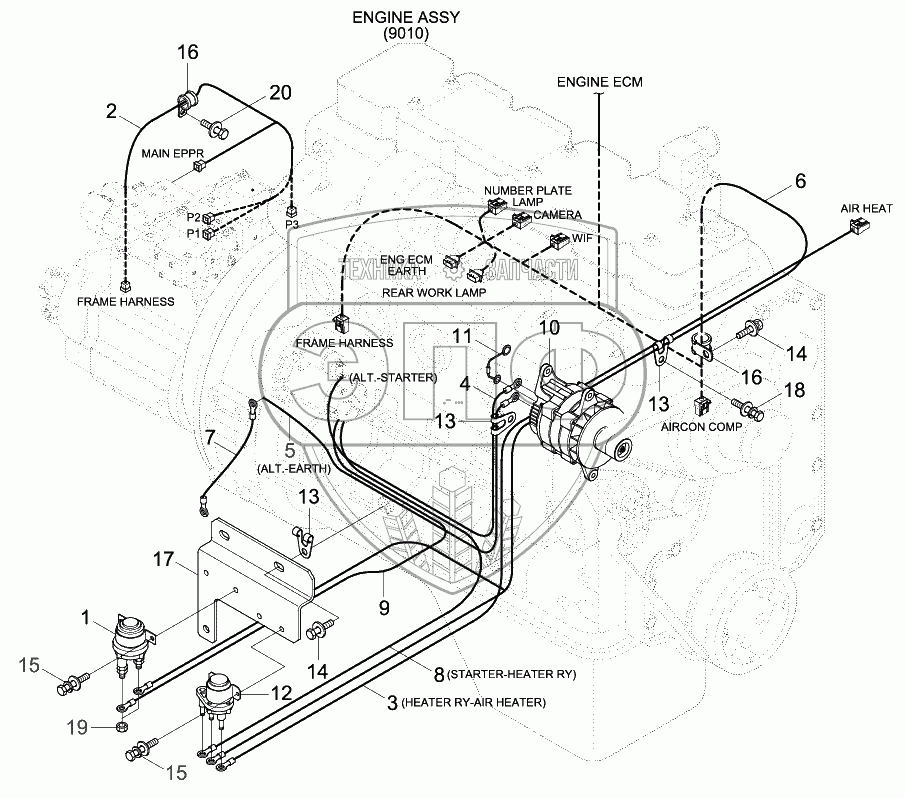 Каталог запасных частей к технике: Hyundai R210W-9. ENGINE ELECTRIC