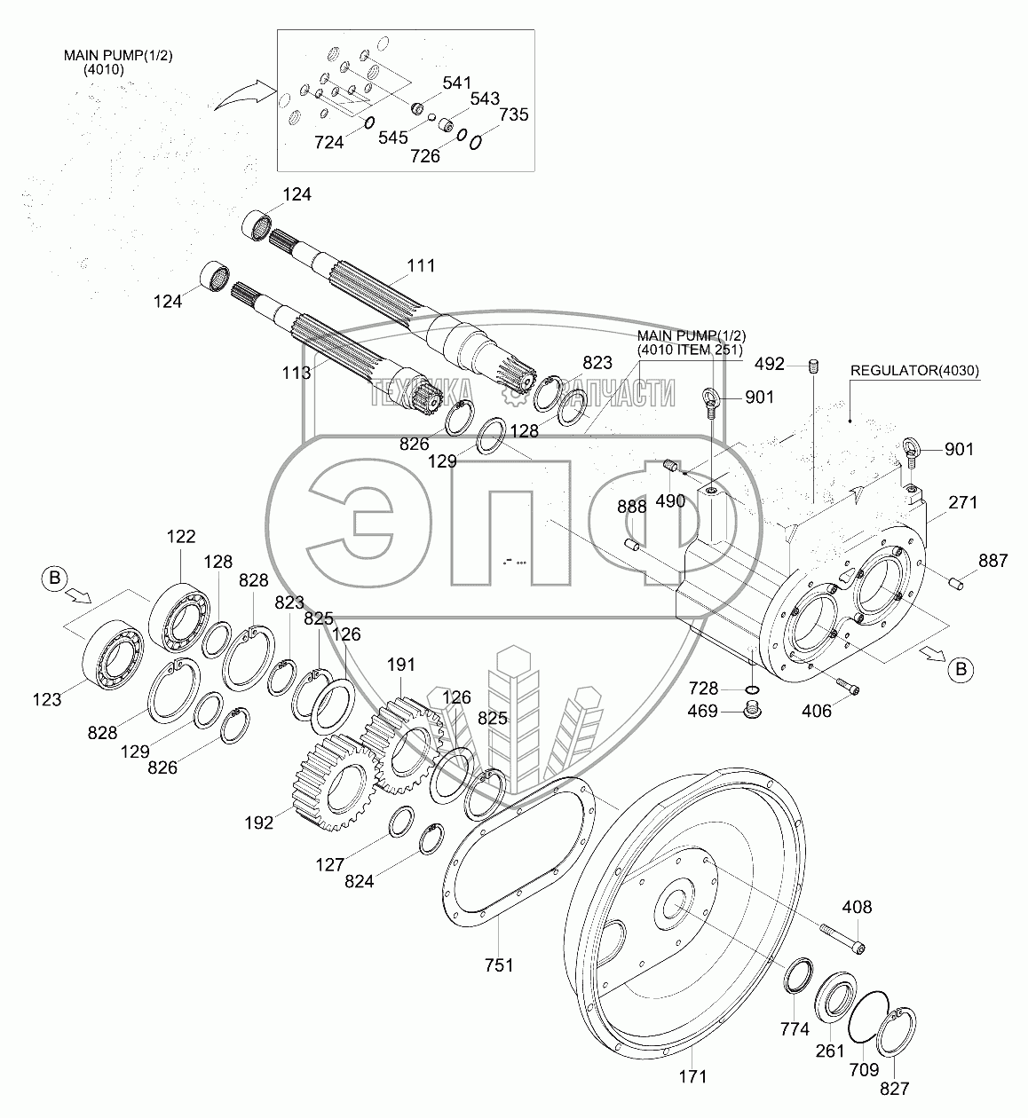 Каталог запасных частей к технике: Hyundai R210W-9. MAIN PUMP (2/2)