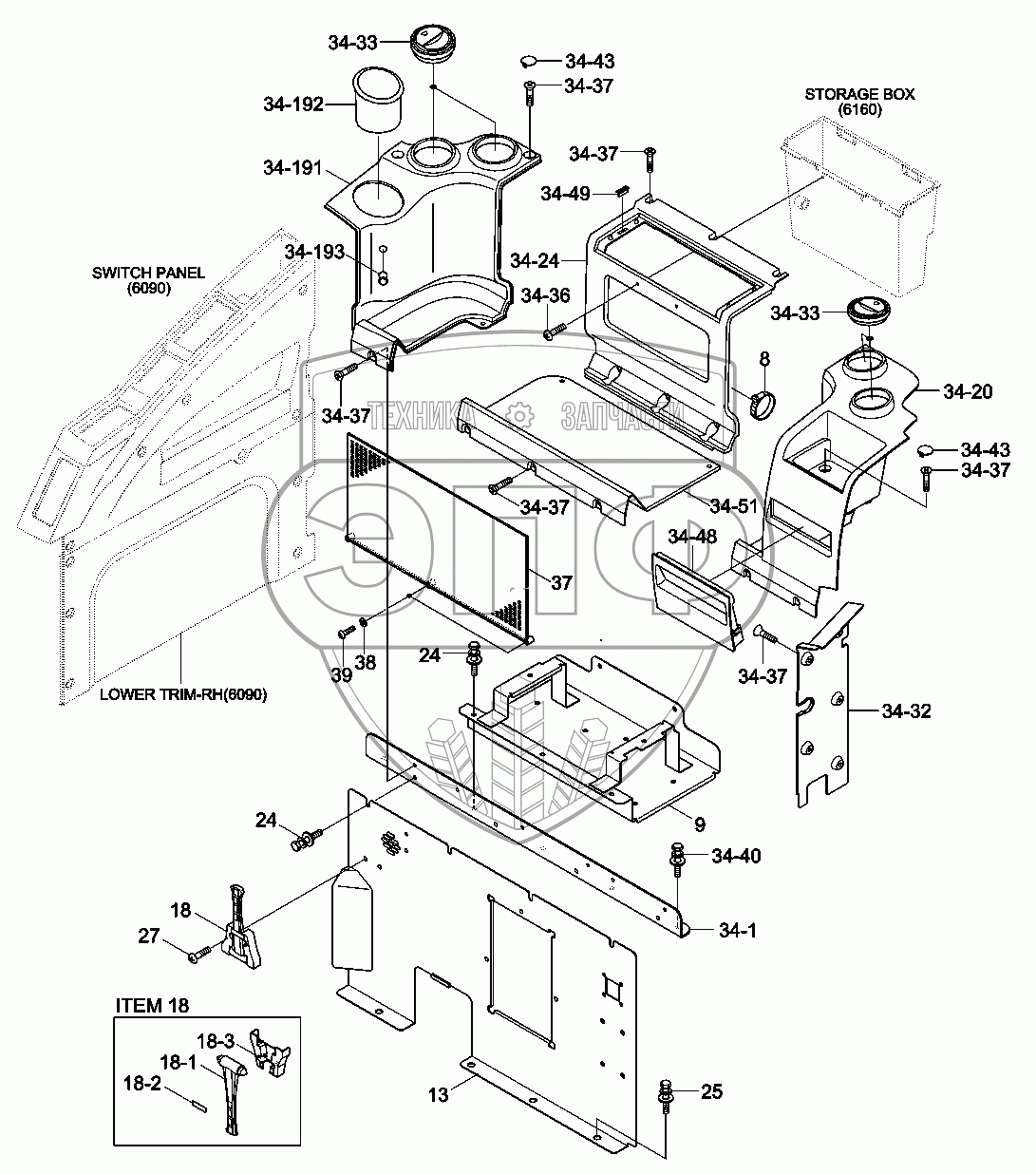 Каталог запасных частей к технике: Hyundai R330LC-9A. CAB INTERIOR 3