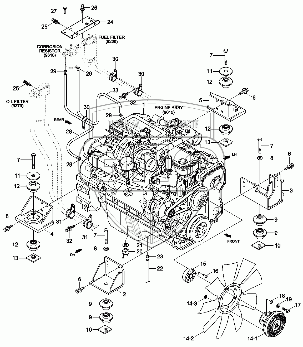 Каталог запасных частей к технике: Hyundai R330LC-9A. ENGINE MOUNTING