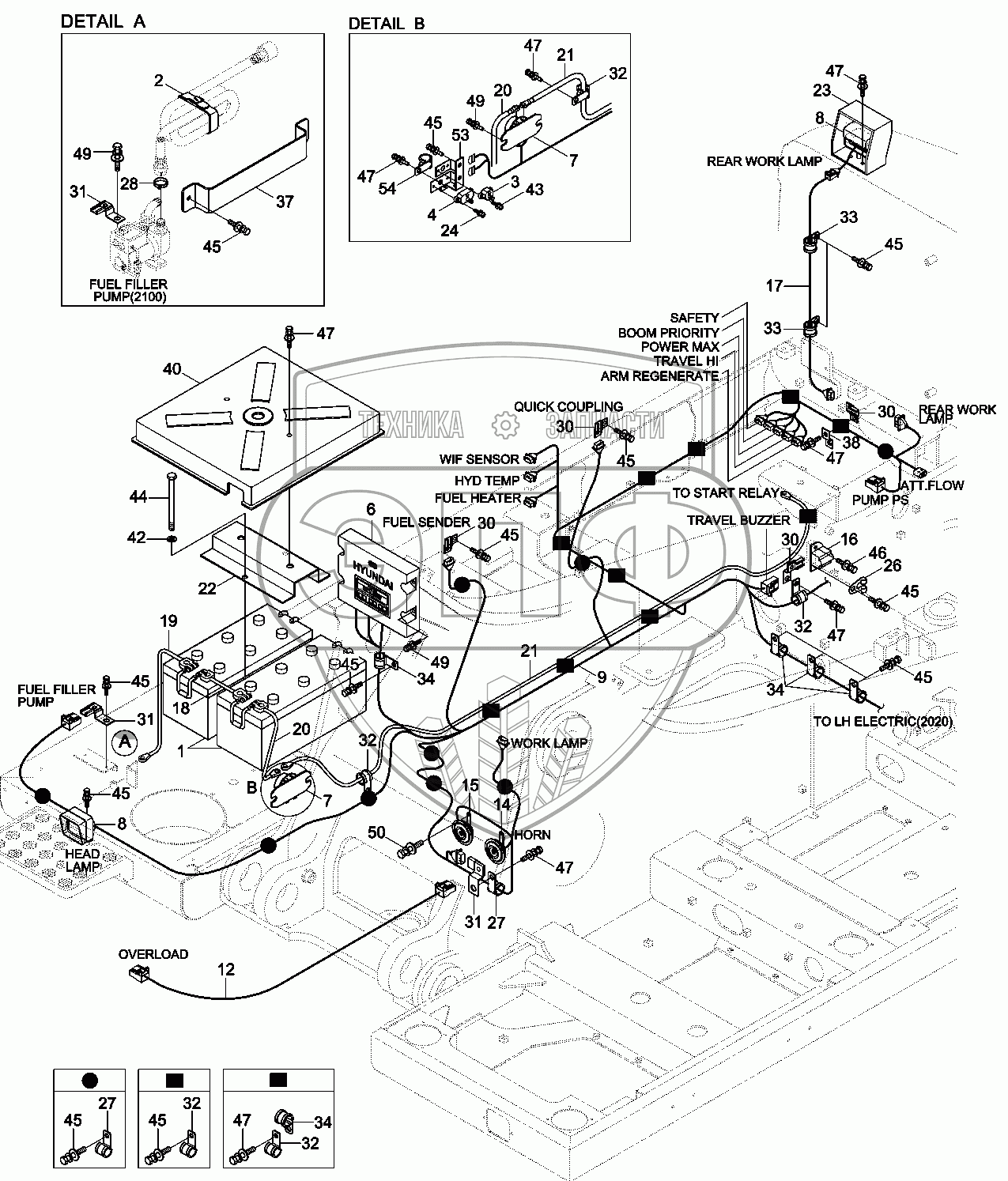 Каталог запасных частей к технике: Hyundai R330LC-9A. RH ELECTRIC