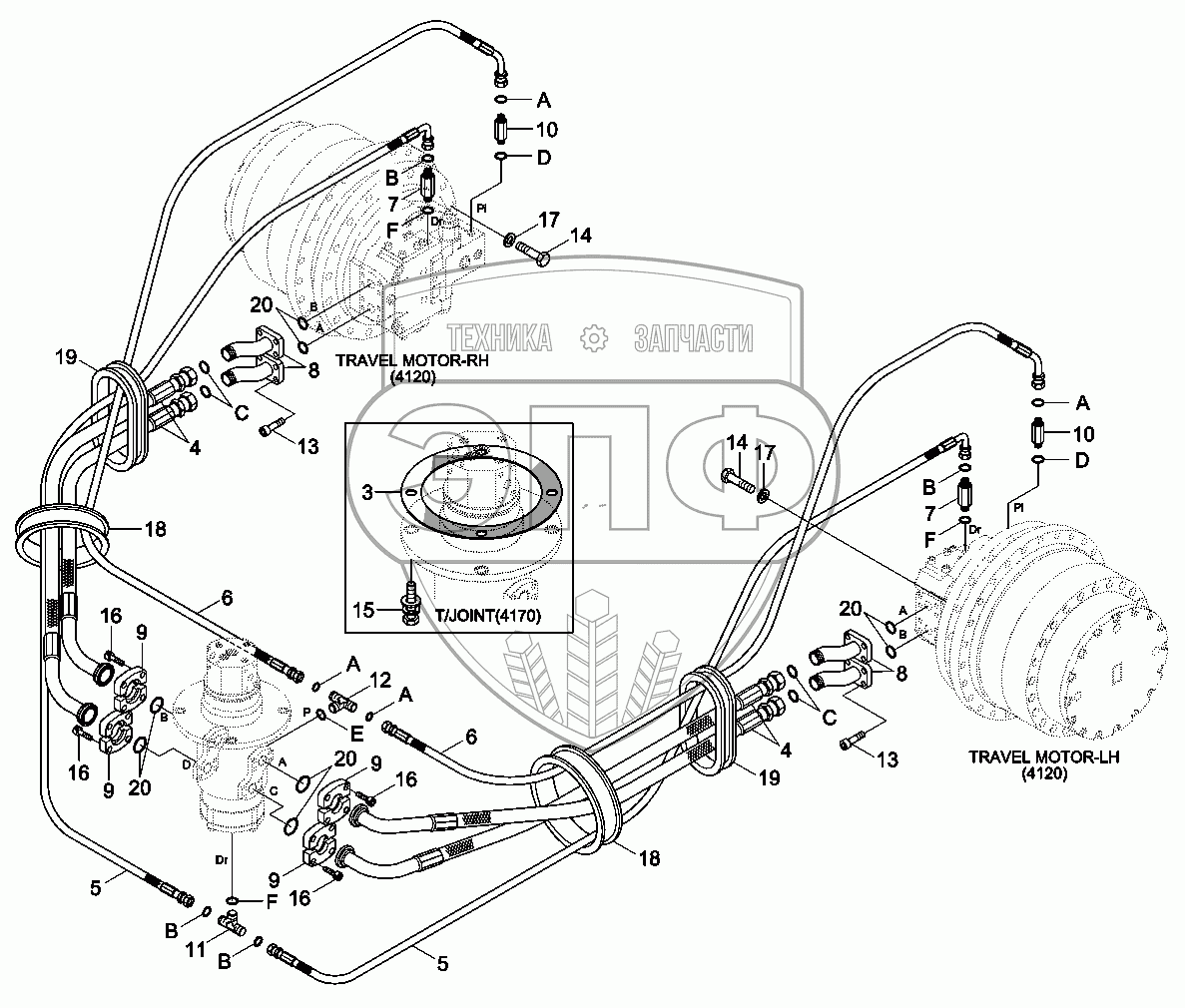 Каталог запасных частей к технике: Hyundai R330LC-9A. TRAVEL HYDRAULIC PIPING