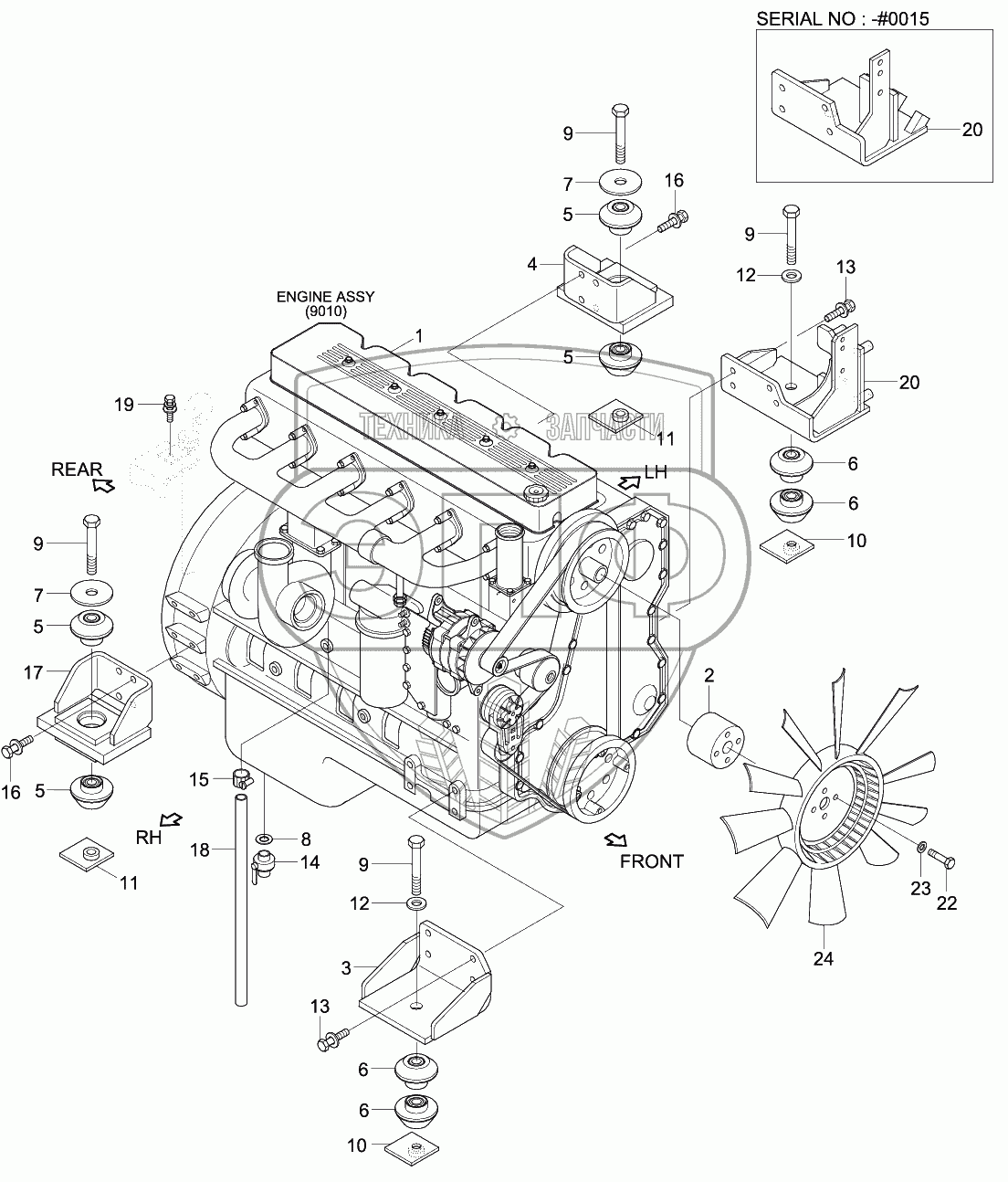 Каталог запасных частей к технике: Hyundai R330LC-9S. ENGINE MOUNTING
