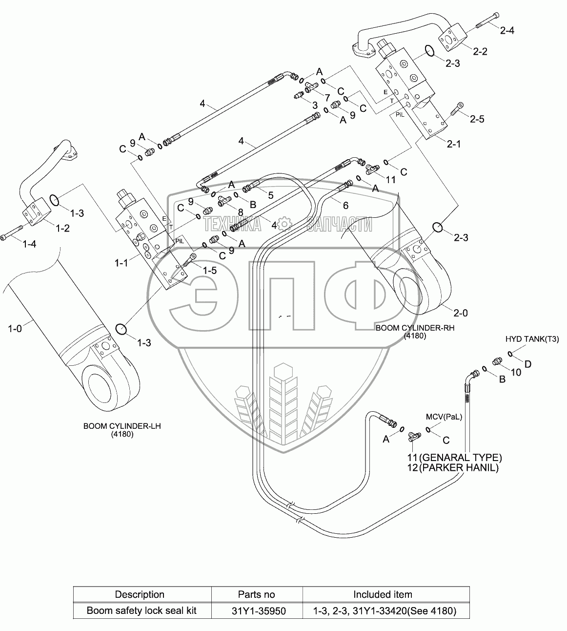 Каталог запасных частей к технике: Hyundai R330LC-9SH. BOOM SAFETY ROCK SYSTEM