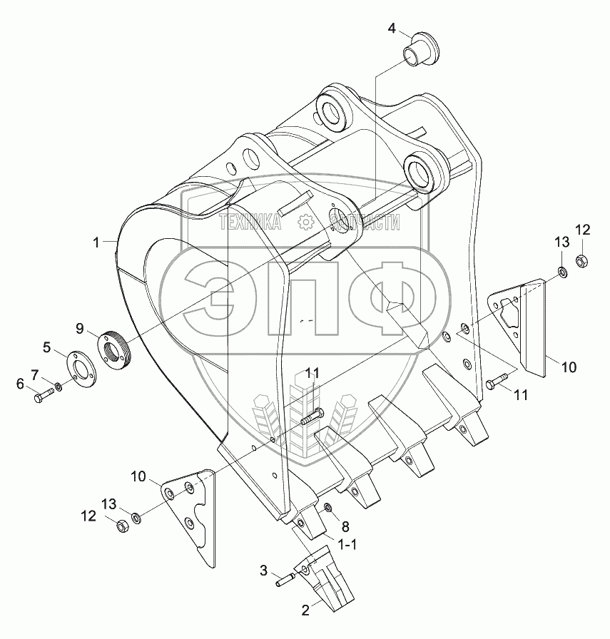 Каталог запасных частей к технике: Hyundai R330LC-9SH. BUCKET (4 TEETH, HEAVY DUTY)