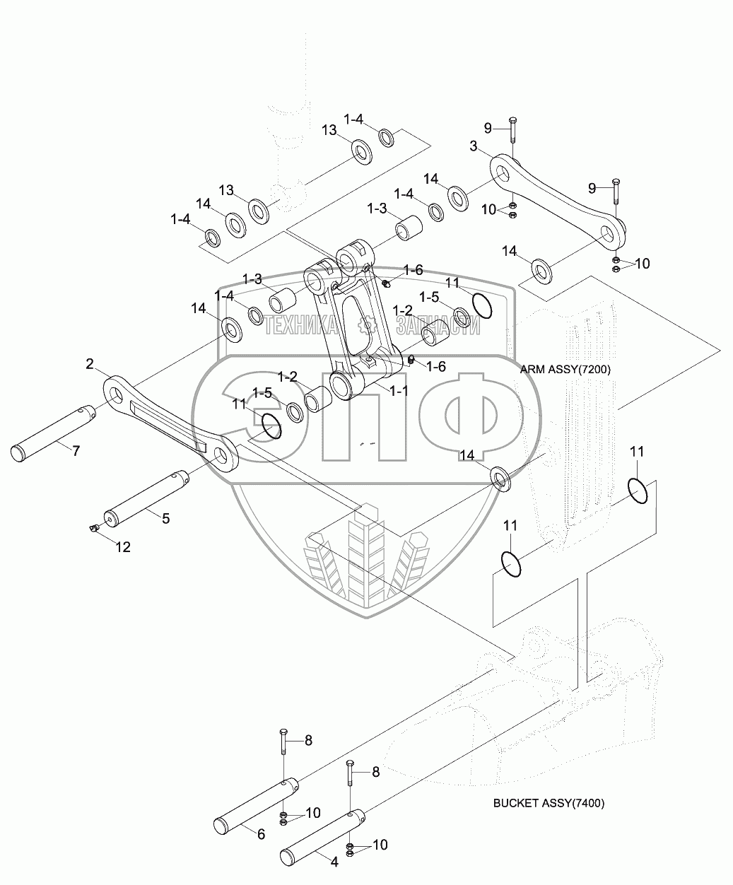 Каталог запасных частей к технике: Hyundai R330LC-9SH. BUCKET CONTROL GROUP