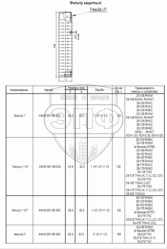 Каталог запасных частей к технике: Ижнефтемаш ГШН. Фильтр защитный
