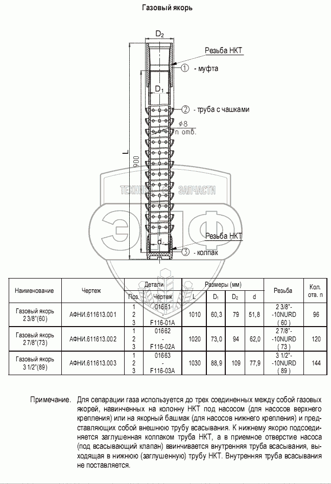 Каталог запасных частей к технике: Ижнефтемаш ГШН. Газовый якорь