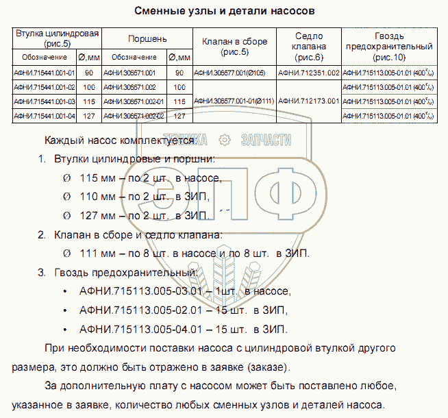 Каталог запасных частей к технике: Ижнефтемаш НЦ-320. Сменные узлы и детали насосов