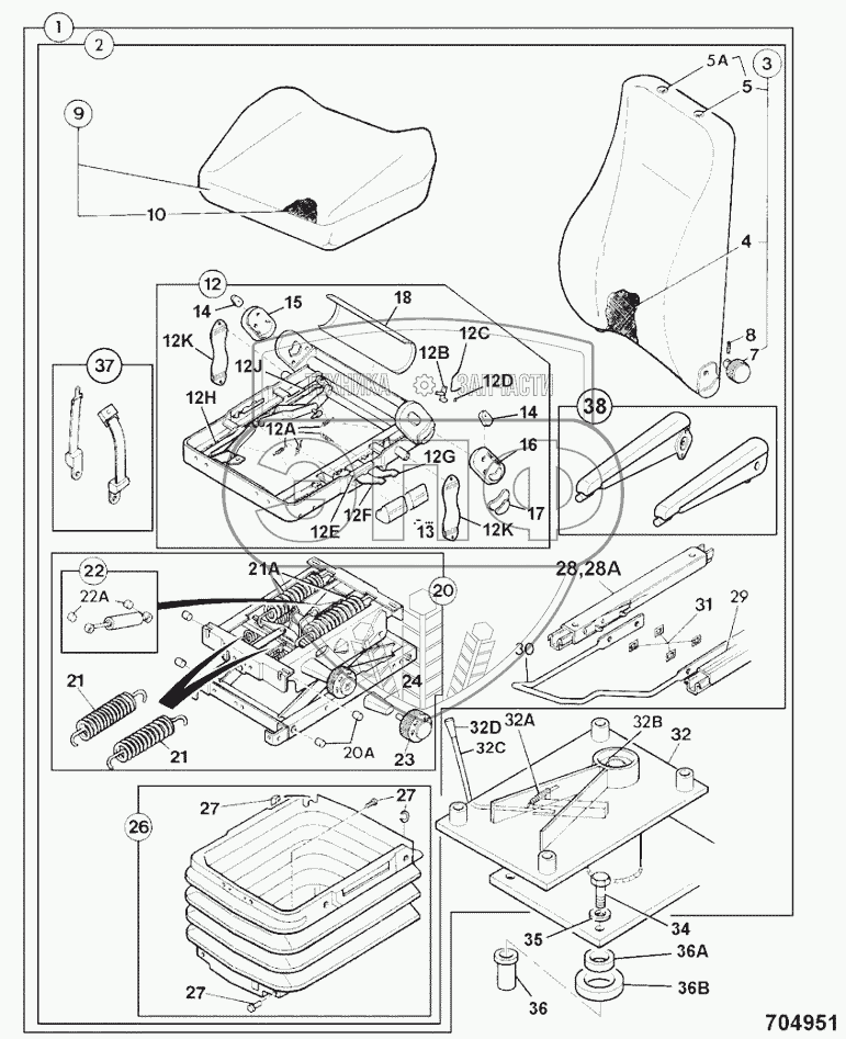 Каталог запасных частей к технике: JCB 4CX. SEAT, SUSPENSION 5000 LB