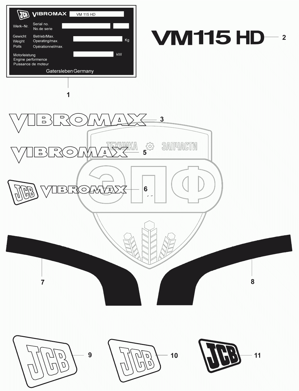 Каталог запасных частей к технике: JCB VM-115 D/PD. Таблички/Decals (VM115HD)