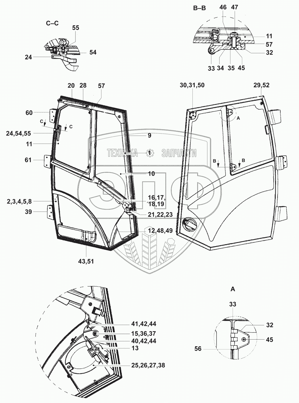 Каталог запасных частей к технике: JCB VM-132D/PD. Двери кабины/ROPS-Cab